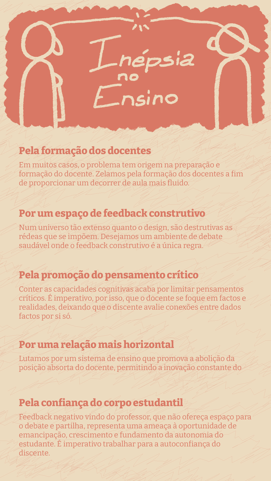 Lutamos por um sistema de ensino que promova a abolição da posição absorta do docente, permitindo a inovação constante do conhecimento de ambas as partes.