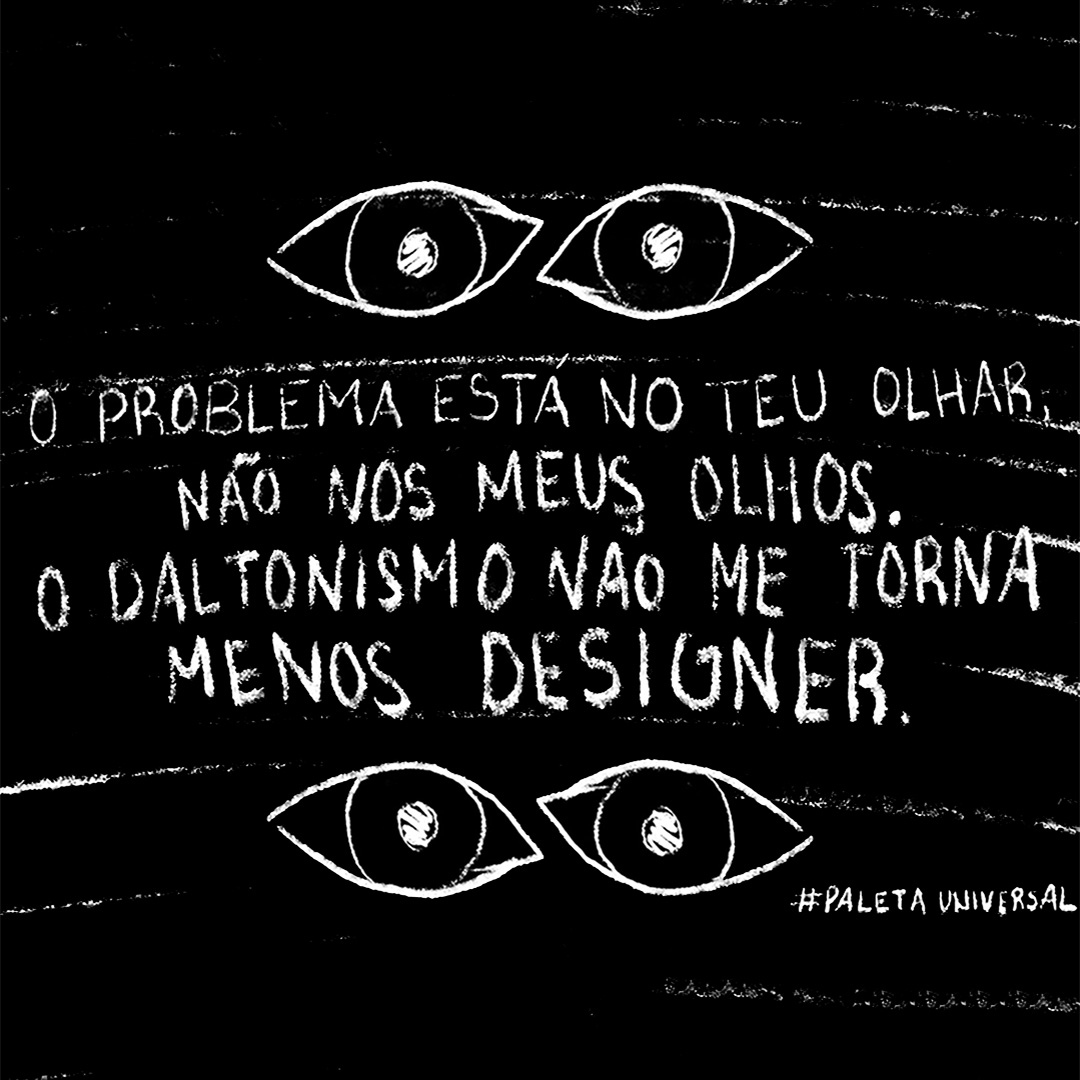 Somos designers. Devemos ser avaliados pela qualidade, não pelas diferenças. O que nos faz diferentes é o que nos torna únicos. Não deve haver discriminação na hora entre contratar um “designer” ou um “designer daltónico”. Não deve haver diferença entre um projeto feito por um “designer” e um “designer daltónico”. Não devemos estar mais atentos a erros de um “designer daltónico” do que a um “designer”. Somos designers!